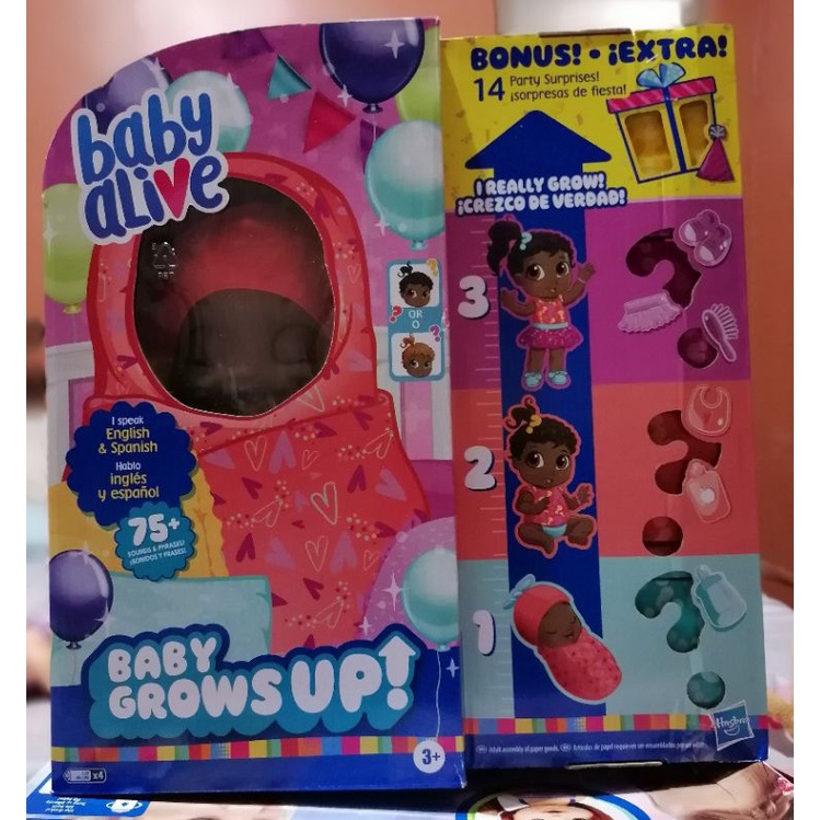Baby Alive Baby Grows Up AA NIB 324839647195. 45 out of 5 stars. Baby Alive invites kids to celebrate love at first hug while inspiring the joy of kindness through all the ways they can love and care for their dolls.